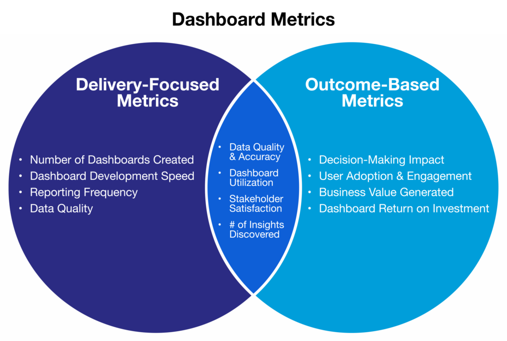 Once the focus shifts from dashboards to products, success metrics must shift as well. Measure outcomes instead of output. Track: